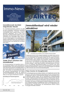 Winter 2025 / 2026 Neue Gesetze im Energiebereich Die Bundesregierung hat wichtige Vorhaben im Energiebereich auf den Weg gebracht. Neben dem Kohlendioxid-Speichergesetz und der Vereinfachung des Vergaberechts sollen der Verbraucherschutz gestärkt und Unternehmen sowie Verbraucher entlastet werden. Mit der Abschaffung der Gasspeicherumlage wird ein Vorhaben des Koalitionsvertrags umgesetzt. Dadurch werden alle Endkunden, Großunternehmen sowie kleine und mittlere Unternehmen entlastet. Das betrifft rund 99 Prozent der Unternehmen und alle Verbraucher, die Gas beziehen. Das Gesetz zur Änderung des Energiewirtschaftsrechts zur Stärkung des Verbraucherschutzes im Energiebereich und zur Änderung weiterer energierechtlicher Vorschriften (EnWG-Novelle 2025) soll der Digitalisierung Rückenwind geben. Stromlieferanten, die Haushaltskunden beliefern, müssen sich gegen Preisrisiken absichern. Stagnierende oder nur leicht steigende Kaufpreise und stabile Zinsen sind derzeit die Rahmenbedingungen auf dem Immobilienmarkt. Für Kaufinteressenten und Verkaufende von Immobilien bedeutet das: Der Markt ist berechenbarer geworden – und es ergeben sich neue Chancen. In vielen Orten sind die Mieten deutlich stärker gestiegen als die Kaufpreise. Während die Kaufpreise noch unter den Höchstständen von 2022 liegen, steigen die Mieten kontinuierlich weiter. „Das verbessert das Kaufpreis-Miete-Verhältnis für potenzielle Käufer erheblich“, erklärt Heike Nicodemus, Immobilienexpertin bei Finanztest. Der diesjährige Immobilienpreisvergleich von Finanztest zeigt wieder große regionale Unterschiede. Wie sich die Immobilienpreise in den einzelnen Regionen entwickelt haben, erfahren Sie in der August-Ausgabe der Zeitschrift oder im Internet unter www.test.de/immobilienpreise. Foto: © Grabener, Grabener Verlag, Kiel, 2025 Foto: © Gerd Altmann, Pixabay Die Nachfrage nach Immobilien ist in den vergangenen Monaten gestiegen. Stabile Zinsen erleichtern den Immobilienkauf Die Finanzierungszinsen für Immobilien haben einen wesentlichen Einfluss auf die Entwicklung des Immobilienmarktes. Nach acht Senkungen des Leitzinses durch die Europäische Zentralbank (EZB) seit dem Sommer 2024 ist nun erst einmal Ruhe eingekehrt. Das bedeutet für Immobilieninteressenten: Bei moderaten Immobilienpreisen und stabilen Finanzierungsbedingungen stehen die Chancen gut, jetzt in angemessener Zeit eine Immobilie zu finden, die den eigenen Bedürfnissen entspricht. Immobilienkauf wird wieder attraktiver Immobilienmarkt durchlebt tiefgreifenden Wandel Der Immobilienmarktzyklus profitierte bis 2022 von einer einzigartigen Kombination aus starkem Bevölkerungswachstum, florierender Wirtschaft und sinkenden Zinsen. Dadurch wurde er zum sogenannten „Superzyklus“. Das ist vorbei. Nach dem Ende des Nullzinsumfeldes beginnt ein neuer Marktzyklus. Die Kernaussagen lauten: Erstens: Es wird keinen neuen „Superzyklus“ geben. Zweitens: Der neue Zyklus beginnt in einer grundlegend veränderten gesellschaftlichen und technologischen Realität als der letzte. Gute Beratung für Kunden in Immobilienfragen wird zukünftig eine wesentliche Rolle spielen. Entwicklung der Finanzierungszinsen Zinsentwicklung von Juli 2021 bis Juli 2025, in Prozent, 10 Jahre Sollzinsbindung 5,0 4,0 3,0 2,0 1,0 0,0 Quelle: © Interhyp 2022 2023 2024 2025 2021 Immo-News Jörg Schlüter AIRTEC SOLUTIONS DROHNEN – MEDIEN – IMMOBILIEN Friesenweg 9 – 26434 Wangerland Tel: (04463) 9419040 info@airtecsolutions.net www.AIRTECSOLUTIONS.net AIRTEC SOLUTIONS