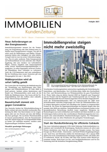 KundenZeitung Markt | Wirtschaft | Recht | Bauen | Finanzieren | Versichern | Vermieten | Verkaufen | Verwalten | Zahlen | Preise Frühjahr 2021 Frühjahr 2021 Start der Bundesförderung für effiziente Gebäude Das neue Gebäudeenergiegesetz (GEG) führt bisherige Fördermaßnahmen zu- sammen und vereinfacht die Beantragung. Bauherren müssen ab sofort zum Heizen mindestens eine Form der erneuerbaren Energien nutzen. Das kann Energie aus Photovoltaik-, Solarwärme- und Kraft-Wärme-Kopplungsanlagen sein. Auch Fern- und Abwärme erfüllen die Anforderungen. Ab 1. Januar 2026 dürfen nur noch ausnahmsweise Heizungen eingebaut werden, die Kohle oder Öl verbrennen. Kessel, die 30 Jahre oder älter sind, müssen außer Betrieb ge- nommen werden. Beim Kauf von Ein- und Zweifamilienhäusern und bei der Sanierung wird die kostenlose Energieberatung Pflicht. Die Coronapandemie hat kaum Auswirkungen auf den Wohnimmobilienmarkt. Die Preise steigen unaufhörlich weiter – aber nicht mehr so dynamisch wie bisher. Immobilienpreise steigen nicht mehr zweistellig Bauwirtschaft stemmt sich gegen Coronakrise Das Deutsche Institut für Wirtschaftsforschung in Berlin rechnet mit einer deutlich wachsenden Bau- leistung bis 2022. Das Bauvolumen ist im vergan- genen Jahr um vier Prozent auf etwa 444 Milliar- den Euro gestiegen. Die nur kleine Wachstumsdelle ist darauf zurückzuführen, dass die Bauunterneh- men ihre Arbeit wegen der Coronapandemie bisher zu keiner Zeit einstellen mussten, sondern unter Hygieneauflagen fortführen konnten. Maklerprovision wird ab sofort hälftig geteilt Das Gesetz über die Verteilung der Maklerkosten bei der Vermittlung von Kaufverträgen über Woh- nungen und Einfamilienhäuser ist Ende 2020 in Kraft getreten. Seitdem zahlen Käuferinnen und Käufer von Wohnimmobilien nicht mehr als die Hälfte der Maklerprovision. Das Gesetz soll die Ver- mögensbildung und den Aufbau einer zukunfts- festen Altersvorsorge erleichtern. Verschiedene Forschungsinstitute untersuchen regelmäßig die Entwicklung des Immobilien- und Mietmarktes. Der F+B-Wohn-Index bildet den Durchschnitt der Preis- und Mietentwicklung von Wohnimmobilien für ganz Deutschland ab. Dieser Index stieg im dritten Quartal 2020 im Vergleich zum Vorquartal um 0,2 Prozent und im Vergleich zum Vorjahresquartal um 5,6 Prozent. Die Wachstumsdynamik hat sich danach insgesamt erneut deutlich abgeschwächt. Auch der Wohnimmobilienindex IMX von ImmoScout24 für 2020 weist deutschlandweit weiterhin Steigerungen der Preise für Wohnimmobilien aus. In einigen Metropolen zeichnet sich allerdings eine Tendenz zu stagnierenden Preisen ab. Die Preise für Eigentumswohnungen im Bestand stiegen über das gesamte Jahr 2020 am stärksten. Einfamilienhäuser im Bestand wurden in der gesamtdeutschen Betrachtung deutlich teurer angeboten. Mietpreise im Bestand legten nur noch in München und Frankfurt amMain deutlich zu. Laut bulwiengesa haben sich bei den verschiedenen Objektnutzungsarten im Coro- najahr sehr unterschiedliche Marktentwicklungen ergeben. Der Wohnimmo- bilienmarkt zeigt von allen Objektarten die geringsten Veränderungen. Neue Anforderungen an den Energieausweis Immobilieneigentümer müssen bei der Vermie- tung, der Verpachtung oder dem Verkauf eines Ge- bäudes einen Energieausweis vorlegen. Das gilt ab sofort auch für Maklerinnen und Makler. Energie- ausweise haben eine Gültigkeit von zehn Jahren. Geregelt sind sie nun im neuen Gebäudeenergiege- setz. Neu ist unter anderem: Beim Energieausweis auf Verbrauchsbasis ist nun entweder eine Objekt- begehung oder eine Analyse von Gebäudefotos Pflicht. Genaue Angaben zum Sanierungsstand sollen bessere Modernisierungsempfehlungen er- möglichen. So sollen Eigentümer motiviert werden, die Klimabilanz ihres Gebäudes zu verbessern. Auch die CO2-Emissionen sind nun aufzuführen. Bei der Erstellung eines neuen Ausweises gilt eine Übergangsfrist bis zum 1. Mai 2021. Quelle: Destatis 2021 Wohn- und Nichtwohngebäude in Tausend 40 30 20 10 0 2010 2012 2014 2016 2018 2020 Monatlich genehmigte Wohnungen Foto: S. Hermann und F. Richter, Pixabay